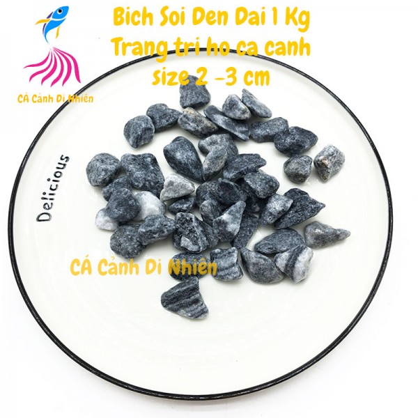 Bịch sỏi ĐEN ĐẠI 1 KG size 2 - 3 CM trang trí hồ cá cảnh với nhiều màu sắc tự nhiên màu đen dùng trang trí tiểu cảnh, nhà cửa, bể cá, hồ cá nhỏ, tủ trưng bày, trải nền, trang trí đồ vật, hòn non bộ, thác phong thủy, v.v....