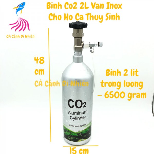 Bình CO2 Aluminum Cylinder 2 Lít van Inox cho hồ cá thủy sinh là loại phụ kiện cung cấp Co2 cho hồ cá thủy sinh giúp cây phát triển khỏe mạnh.