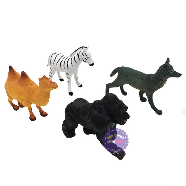 Bộ sản phẩm gồm 4 loài thú rừng: Sói, ngựa, khỉ đột, lạc đà.