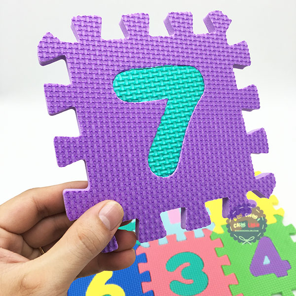Bộ sản phẩm gồm 10 miếng xốp được in hình chữ số từ 0 - 9