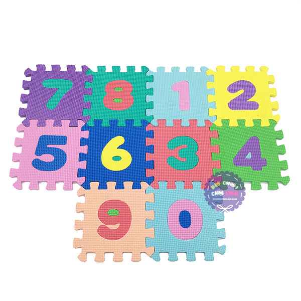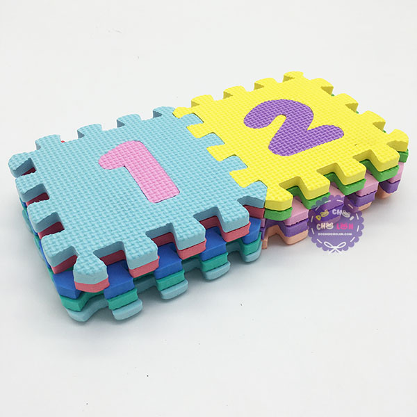 Bộ đồ chơi 10 miếng xốp ghép lót sàn hình chữ số 0-9 14.5x14.5 là loại đồ chơi giáo dục với các chữ số từ 1-9 nhiều màu sắc đẹp mắt, sinh động, rõ nét giúp bé làm quen với các con số cơ bản đồng thời với độ dày lên đến 1cm nên rất mềm và êm ái khi lót trên sàn có tắc dụng giúp giảm lực va đập khi bé té xuống sàn nhà. Sản phẩm dành cho các bé từ 1 tuổi trở lên.