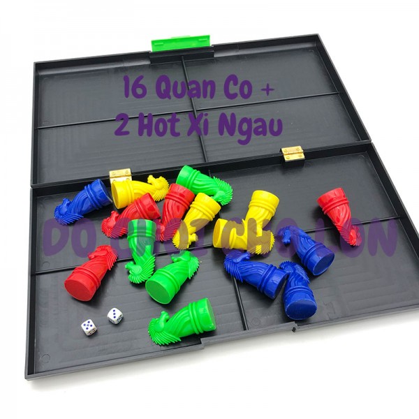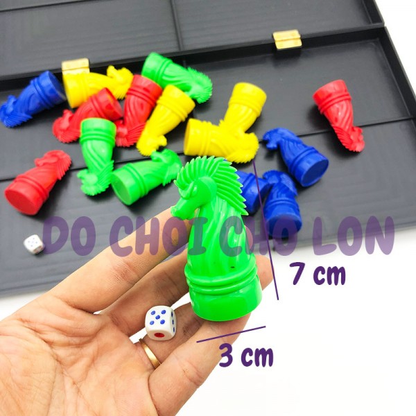 Đặc điểm: bộ sản phẩm gồm 16 quân cờ cá ngựa có lục lạc bên trong khi chơi sẽ vang lên tiếng leng keng với 4 màu nổi bậc và 2 viên xúc xắc
