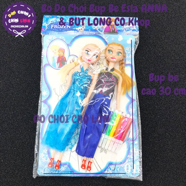 Bộ sản phẩm gồm 2 búp bê Frozen: Elsa và Anna và bộ tô màu bút lông