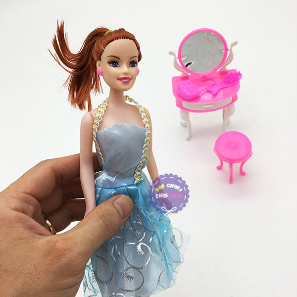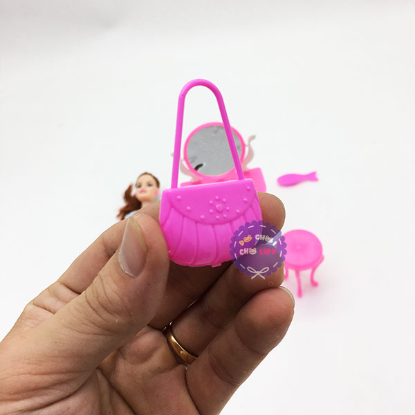 Kích thước bịch: 35 x 15 cm, búp bê: 27 cm, bàn trang điểm: 17 x 10 x 7 cm