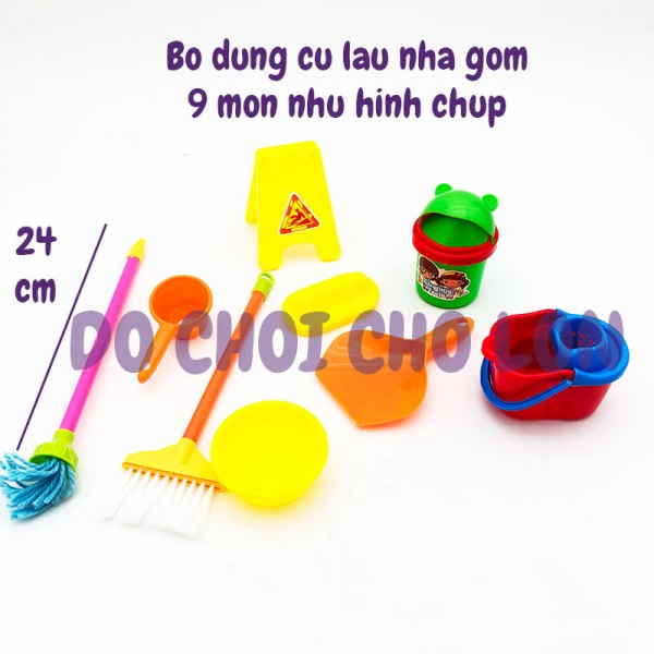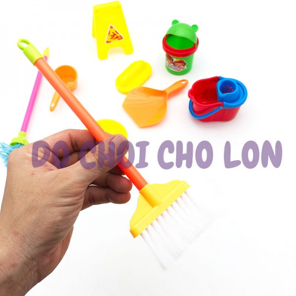 Bộ đồ chơi dụng cụ lau nhà dọn dẹp nhà cửa 9 món 58089A là loại đồ chơi mô phỏng các dụng cụ nội trợ giúp dọn dẹp nhà cửa cho bé với thiết kế màu sắc tươi sáng, dễ thương chắc chắn sẽ làm cho các bé gái thích thú với món đồ chơi này. Sản phẩm dành cho các bé từ 3 tuổi trở lên.