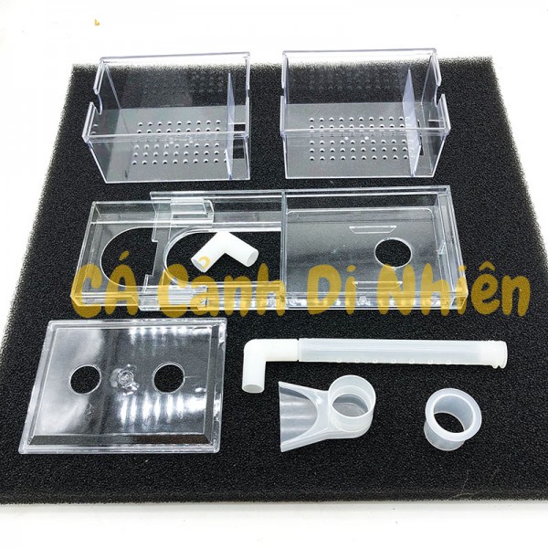 Bộ lọc dàn mưa 2 tầng 2 khay lọc bằng Mica cho hồ cá 30 - 50 cm là loại lọc dàn mưa giàn mưa cho bể hồ cá, hệ thống lọc được tiếp xúc với không khí trực tiếp, giải phóng nh3,nh4,no3,no2 và các chất có hại khác, làm nước trong hơn, sạch hơn, oxy hòa tan nhiều hơn, cá ăn khỏe, phòng tránh bệnh tốt hơn. Với số lượng khay lọc mưa nhiều đặt chồng lên nhau nên có sức đựng được nhiều vật liệu lọc hơn.