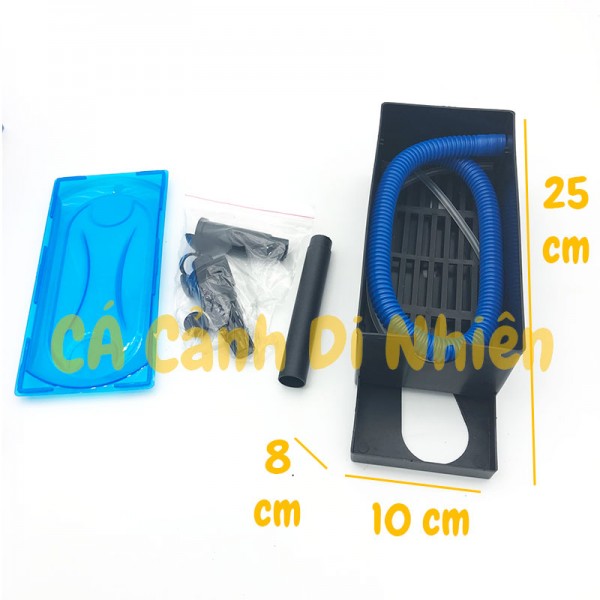 Kích thước hộp lọc: 25 x 8 x 10 cm. ( Hộp lọc có thể kéo dài ra cho vừa thành hồ cá)