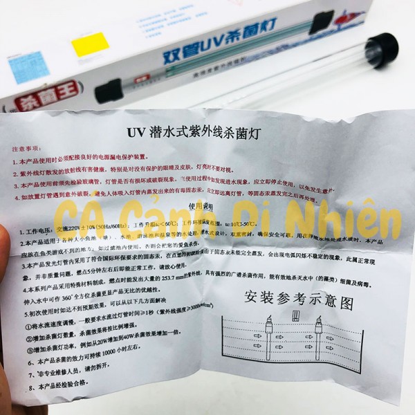 Cách dùng: đặt đèn trong vách bể lọc, mỗi lần dùng 4-6h, tránh Đèn UV tiếp xúc với mắt người và cá, tắt nguồn điện trước khi cho tay vào nước