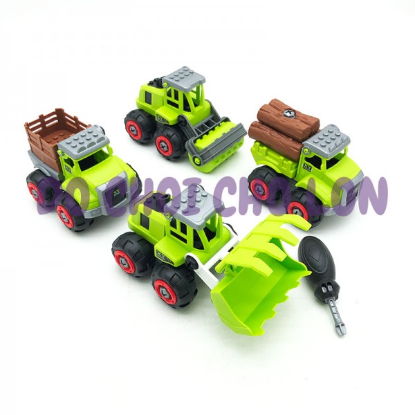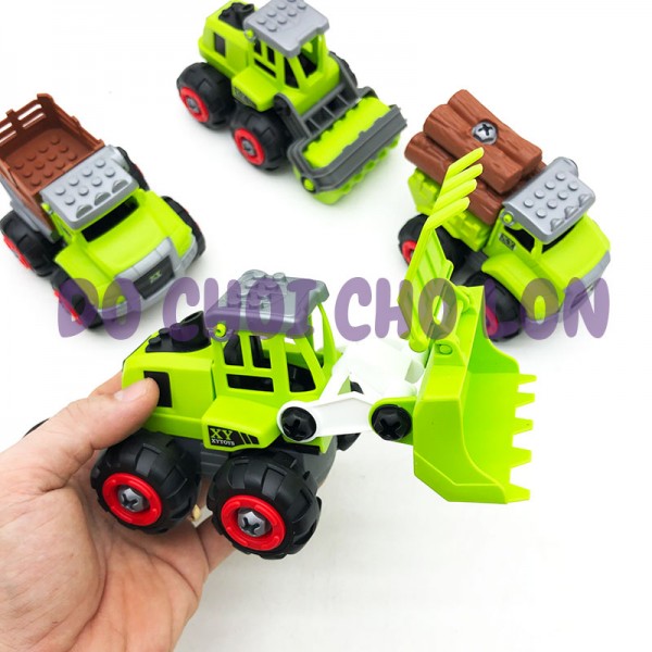Đồ chơi 4 xe công trình NÔNG NGHIỆP lắp ráp ốc vít chạy trớn XY01-1 là loại đồ chơi xe mô hình các loại xe công trình nông nghiệp đủ mẫu gồm xe ben, xe xúc, xe lu, xe chở gỗ với thiết kế đẹp mắt, màu sắc tươi sáng đặc biệt bé có thể tháo lắp dành cho các bé trên 3 tuổi.