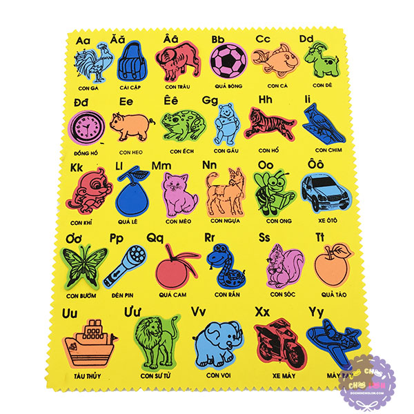 Đồ chơi bảng chữ cái xếp hình con vật và đồ vật bằng mút xốp là loại đồ chơi giáo dục cho bé với nhiều hình ảnh động vật và đồ vật với màu sắc đẹp mắt, sinh động, rõ nét giúp bé tập học chữ và nhận biết các con vật và đồ vật xung quanh. Sản phẩm dành cho các bé từ 3 tuổi trở lên