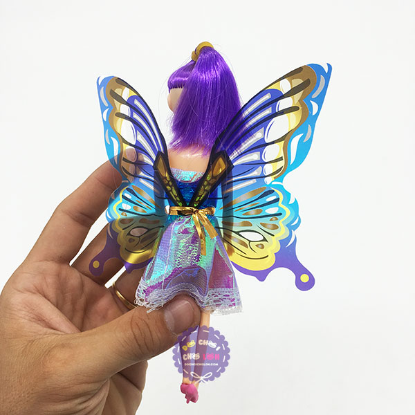 Kích thước búp bê cánh bướm: cao 15 cm, chiều dài cánh bướm 12 cm