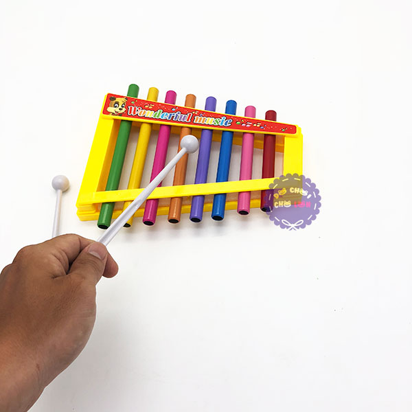 Đặc điểm: đàn gõ có các thanh sắt với nhiều màu sắc khác nhau giúp bé phân biệt màu sắc, các ống hình trụ tròn của đàn giúp tạo ra được âm thanh vang lâu hơn.