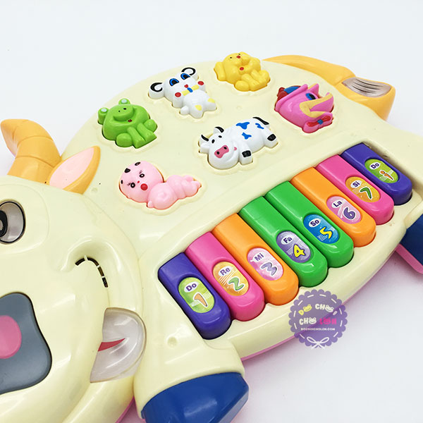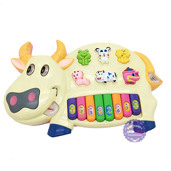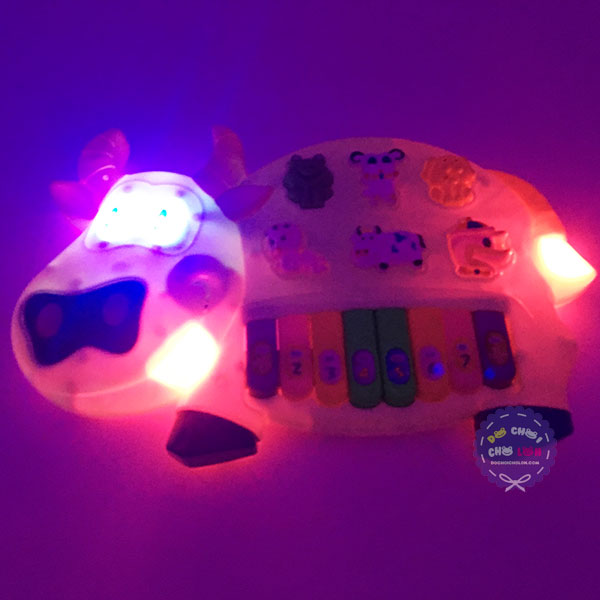 Đồ chơi đàn organ hình con bò sữa là loại đồ chơi nhạc cụ đàn Organ với hình con bò sữa trắng dễ thương phát ra tiếng nhạc với 2 chế độ 1 chế độ phát các âm thanh đô rê mi, 1 chế độ chơi đàn tự động kèm theo ánh đèn nhấp nháy trên đôi mắt, đuôi và lưỡi chú bò, giúp bé kích thích tiềm năng đam bê âm nhạc và khả năng ngôn ngữ khi còn bé, sản phẩm dành cho bé 3 tuổi trở lên.
