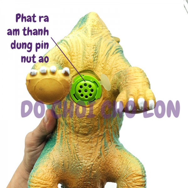 Đặc điểm: dùng pin nút áo, có nhạc phát ra âm thanh. Nhớ tháo nút ngăn pin để khủng long phát ra âm thanh