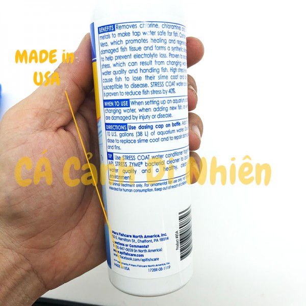 Dung dịch API STRESS COAT+ 237 ML giảm Stress khử độc nước cho hồ cá giúp loại bỏ Clo, Cloramin, Amoniac, Nitrit, Nitrat và các độc tố kim loại nặng, làm cho nước máy trở nên an toàn trước khi thay vào bể. API Stress Coat+ giúp cá tép giảm stress 40% và làm lành các mô bị thương, giúp cá tép luôn khỏe mạnh.