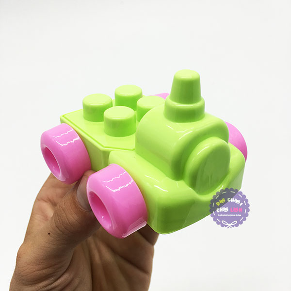 Bộ sản phẩm cặp đồ chơi lắp ráp, xếp hình này gồm 53 miếng ghép bao gồm đầu xe lửa, mảnh ghép có con mắt cho bé tha hồ thỏa sức sáng tạo xếp hình thành các con thú khác nhau
