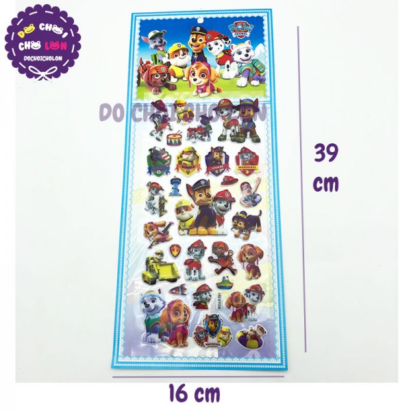 Hình dán sticker nổi 3D hình chó cứu hộ Paw Patrol với nhiều hình ảnh ngộ nghĩnh, đáng Yêu, màu sắc sinh động hình các chú chó cứu hộ thích hợp dùng để dán tường, tủ, vật dụng trong nhà với mục đích trang trí hoặc dán vào tập để bé có thể sưu tập các hình dáng cho riêng mình.