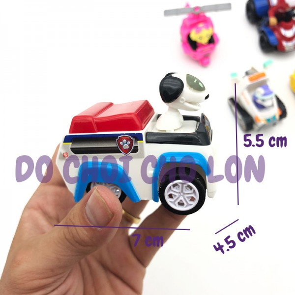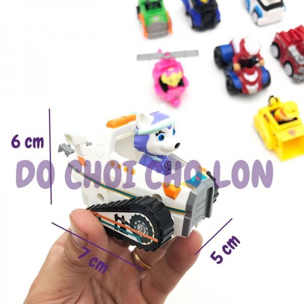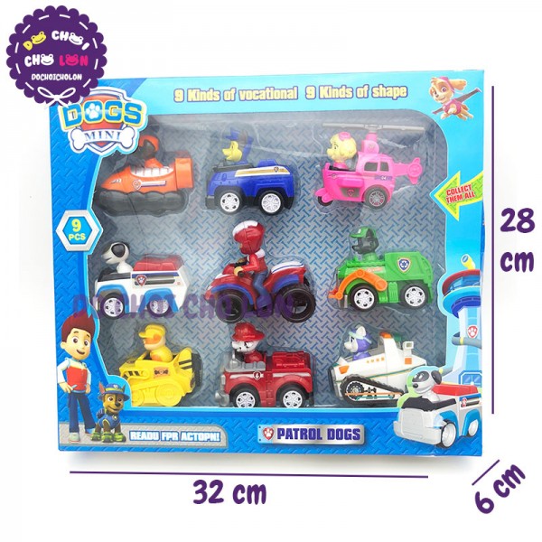 Hộp đồ chơi 9 xe chó cứu hộ Paw Patrol chạy trớn M99C là loại đồ chơi mô hình các chú chó cứu hộ trong một bộ phim hoạt hình giáo dục của Mỹ nói về cậu bé Ryder và 8 chú chó cứu hộ với nhiệm vụ giải cứu và bảo vệ an ninh cho thành phố. Mỗi chú chó có 1 kỹ năng và vật dụng đặc biệt để có thể hoàn thành nhiệm vụ cứu hộ. Với thiết kế màu sắc tươi sáng, chất liệu an toàn, mô phỏng chân các các chú chó cứu hộ. Bộ sản phẩm gồm 6 chú chó cứu hộ này chắc chắn sẽ làm các bé thích thú khi có một bộ sưu tập chú chó cứu hộ Paw Patrol. Sản phẩm dành cho các bé từ 3 tuổi trở lên.