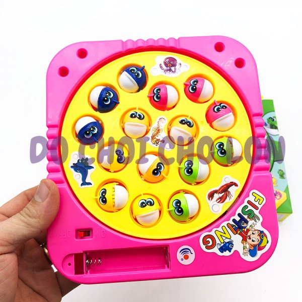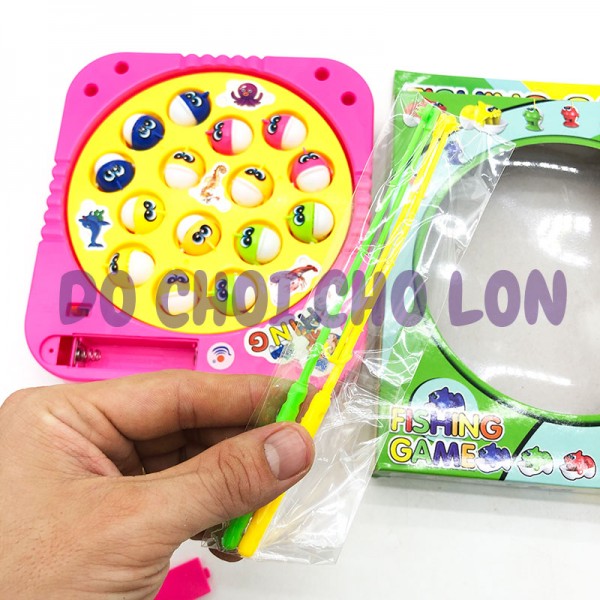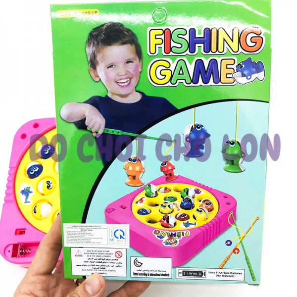 Đặc điểm: khi gắn pin vào các chú cá sẽ chồi lên chụp xuống, khay cá thì xoay tròn, với 2 cần câu bé có thể chơi cùng bạn bè cùng nhau thi xem ai câu nhiều hơn