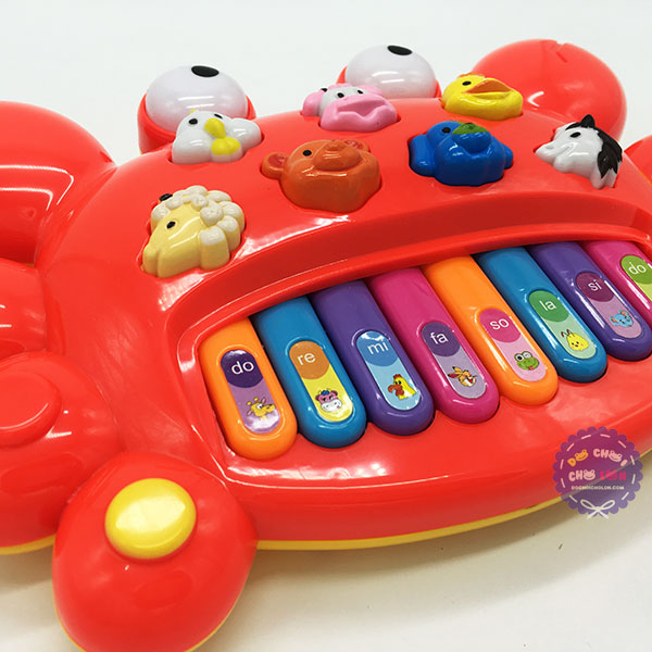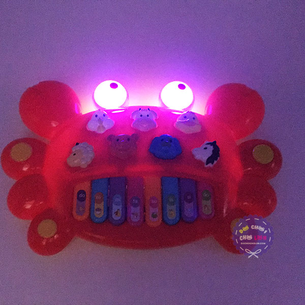 Hộp đồ chơi đàn organ hình con cua dùng pin có nhạc đèn là loại đồ chơi nhạc cụ đàn Organ với hình con bò cua dễ thương phát ra tiếng nhạc với 2 chế độ 1 chế độ phát các âm thanh đô rê mi, 1 chế độ chơi đàn tự động kèm theo ánh đèn nhấp nháy trên đôi mắt, giúp bé kích thích tiềm năng đam bê âm nhạc và khả năng ngôn ngữ khi còn bé, sản phẩm dành cho bé 3 tuổi trở lên.