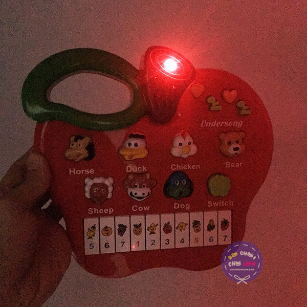Hộp đồ chơi đàn organ hình trái táo dùng pin có nhạc đèn là loại đồ chơi nhạc cụ đàn Organ với hình trái táo dễ thương phát ra tiếng nhạc với 2 chế độ 1 chế độ phát các âm thanh đô rê mi, 1 chế độ chơi đàn tự động kèm theo ánh đèn nhấp nháy trên cuốn táo, nhấn vào các hình con vật trên táo sẽ phát ra âm thanh các con vật, giúp bé kích thích tiềm năng đam bê âm nhạc và khả năng ngôn ngữ khi còn bé, sản phẩm dành cho bé 3 tuổi trở lên