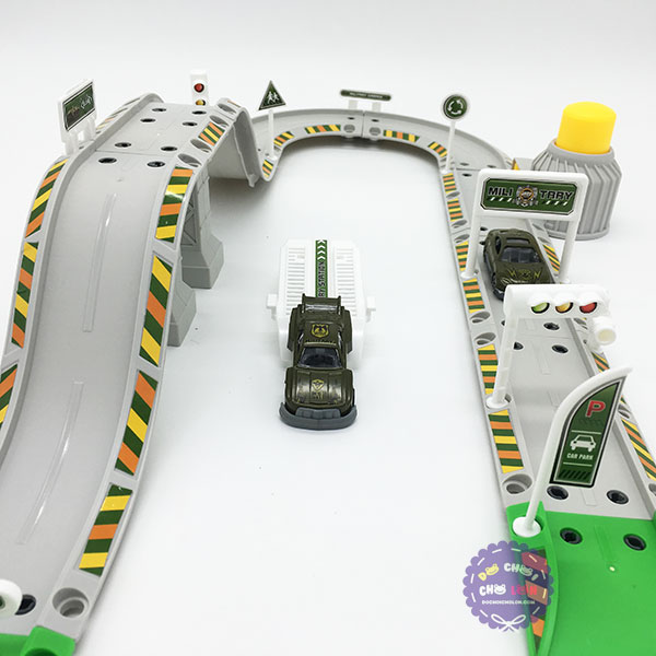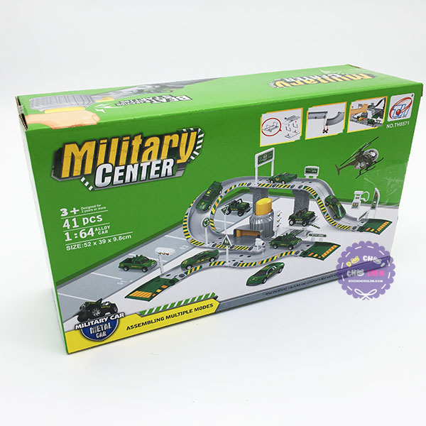 Hộp đồ chơi đường ray bãi đậu xe quân sự Military Center là loại đồ chơi mô hình đường ray với các loại xe sắt mô hình được sử dụng trong quân đội với thiết kế màu sắc tươi sáng, đẹp mắt cùng các biển báo giao thông tín hiệu chắc chắn sẽ là món đồ chơi trẻ em giáo dục giúp các bé vừa học vừa chơi. Sản phẩm dành cho các bé từ 3 tuổi trở lên.