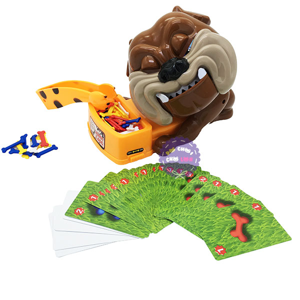 Bộ sản phẩm gồm: 1 con Bulldog, xương với 4 màu xanh trắng vàng và đỏ, 1 bộ thẻ rút xương, 1 khay đựng xương, 1 cái gắp xương.