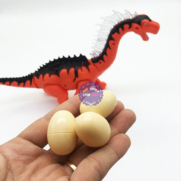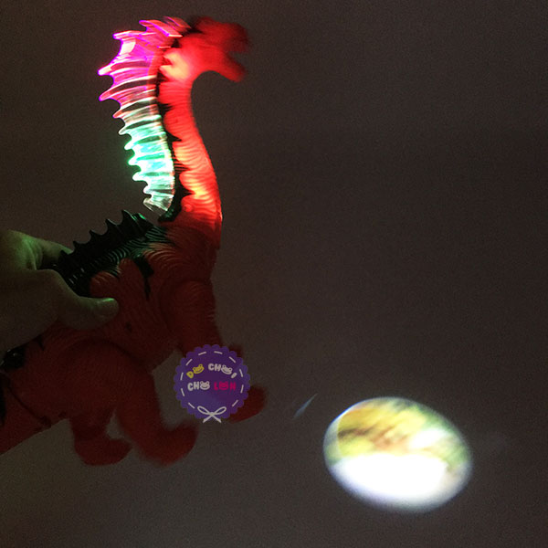 Đặc điểm: có thể đi và phát ra âm thanh, lắc đầu và đuôi, đẻ trứng, vảy ngay cổ có đèn nhiều màu sắc, từ cổ khủng long có đèn 3D chiếu xuống đất