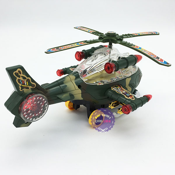 Hộp đồ chơi máy bay trực thăng chiến đấu chạy pin có đèn nhạc là loại đồ chơi mô hình máy bay trực thăng chiến đấu với thiết kế kiểu dáng giống với máy bay trực thăng chiến đấu, màu sắc chân thật chắc chắn sẽ là món đồ chơi mô hình máy bay được các bé yêu thích. Sản phẩm dành cho các bé từ 3 tuổi trở lên