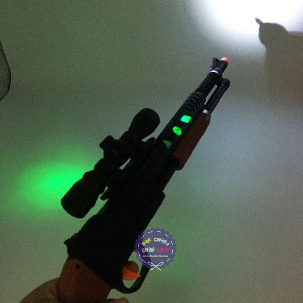 Đặc điểm: an toàn vì súng ko có đạn, chỉ phát ra âm thah mô phỏng giúp bé vui tai, có đèn nhạc khi lên đạn