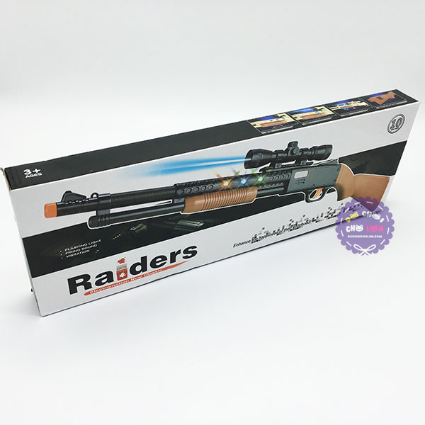 Hộp đồ chơi súng shotgun Raiders dùng pin có đèn nhạc là loại đồ chơi bắn súng dùng pin với thiết kế màu sắc đẹp mặt, kiểu dáng chân thật hình cây súng shotgun chắc chắn sẽ là món đồ chơi bắn súng được các bé yêu thích. Sản phẩm dành cho các bé từ 3 tuổi trở lên