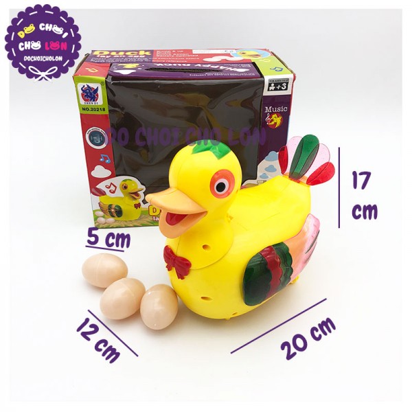 Hộp đồ chơi vịt đẻ trứng chạy pin có nhạc đèn 20218 là loại đồ chơi mô hình động vật chú vịt ngộ nghĩnh đáng yêu với thiết kế màu sắc tươi sáng đặc biệt có thể đẻ trứng chắc chắn sẽ là món đồ chơi trẻ em mô hình được bé yêu thích tò mò học hỏi về thế giới xung quanh. Sản phẩm dành cho bé từ 3 tuổi trở lên.