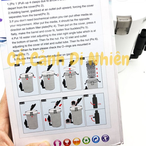 Cách sử dụng: lắp nối tiếp với máy lọc ngoài ở đường dây đầu vào hoặc dùng kèm máy bơm nếu sử dụng như hộp lọc chính.