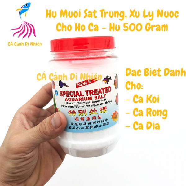 Hũ muối 500 gram sát trùng chuyên dùng cho hồ cá cảnh có công dụng sát trùng hồ cá khi thay nước bể hồ mới đặc biệt sản phẩm chuyên dùng cho các hồ: Cá dĩa, Cá Koi, Cá vàng, Cá rồng, v.v.