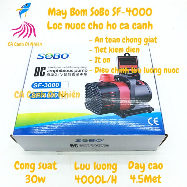 Máy bơm Sobo SF-4000 30W bơm chìm lọc nước cho hồ cá cảnh là loại thiết bị chuyên dùng để lọc nước cho hồ bể cá cảnh của bạn luôn luôn sạch có bảng điều khiển lưu lượng nước, an toàn tiết kiệm điện kèm tính tăng chống giật theo công bố của nhà sản xuất.