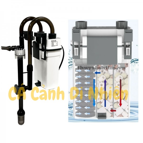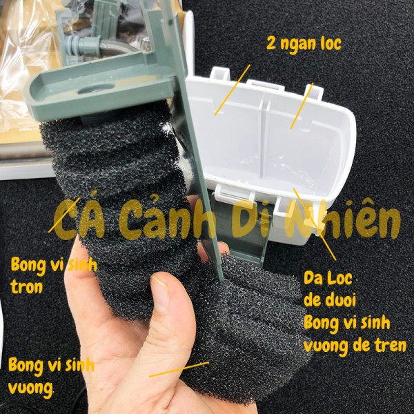 Máy lọc treo Xiaoli Sunsun XBL-300 bao gồm 2 ngăn lọc, 1 ngăn đã có sẵn bông lọc sinh hóa hình trụ tròn và 1 ngăn có bông lọc vuông (có thể cho thêm vật liệu lọc dạng hạt vào ngăn này).