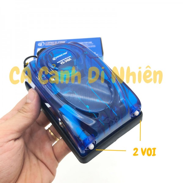 Máy sục sủi khí oxy 2 vòi 5W VIPSUN VS-348A cho hồ cá cho hồ cá cho hồ cá cảnh còn có nhiều tên gọi khác như máy oxy, máy sục khí oxy, máy tạo oxy, máy thổi khí oxy, máy bơm khí oxy cho hồ cá. Đây là loại máy bơm thổi khí thường được sử dụng trong bể cá cảnh nói chung hoặc bể thủy sinh nói riêng, với bể cá loại nhỏ (bình, chậu) có thể không cần sử dụng. Máy sủi có tác dụng tăng cường khí oxy trong nước hoặc trỗn đều nước bằng cách thổi không khí vào trong môi trường nước và tạo các dòng chảy nhân tạo đảo nước, khi đó không khí chứa oxy sẽ được hòa tan vào nước giúp động vật thủy sinh trong bể hô hấp khỏe mạnh. Ngoài ra,nó còn có tác dụng đảo đều nước đặc biệt là dung dịch thủy canh.