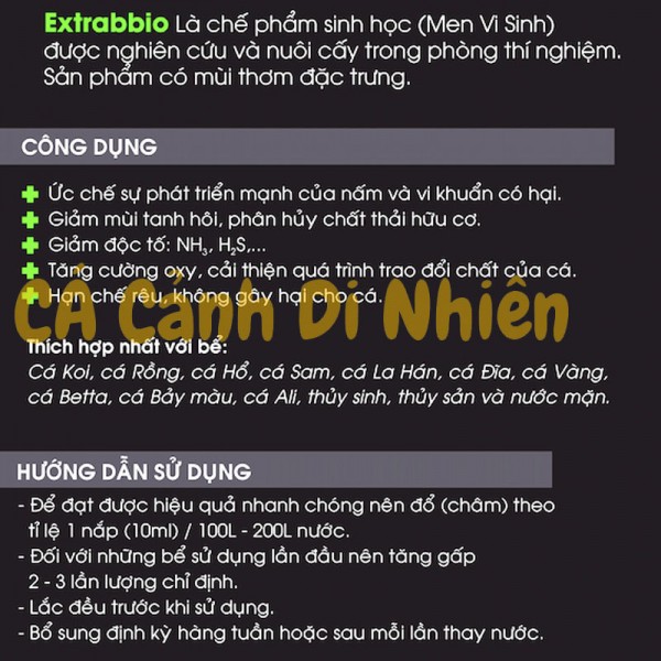 Men vi sinh Extra Bio 250ml -Chế phẩm vi sinh xử lý nước cho hồ bể cá cảnh có mùi thơm nhẹ đặc trưng chứ không hắc hay khó ngửi như các loại vi sinh khác.