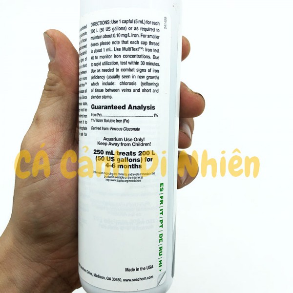 - SEACHEM - Flourish Iron là một loại phân nước có hàm lượng sắt ( Fe ) cao 10.000 mg/L.