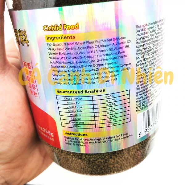 Thức ăn Cá Đĩa, cá nhỏ thủy sinh, cá sống tầng đáy Cichild Food 280 gram Porpoise là loại thức ăn chuyên dùng cho cá loại cá nhỏ thủy sinh cá hồ thủy sinh, cá sống tầng đáy như cá chuột, cá dĩa cá đĩa với độ đạm tới 43% giúp cá mau lớn.
