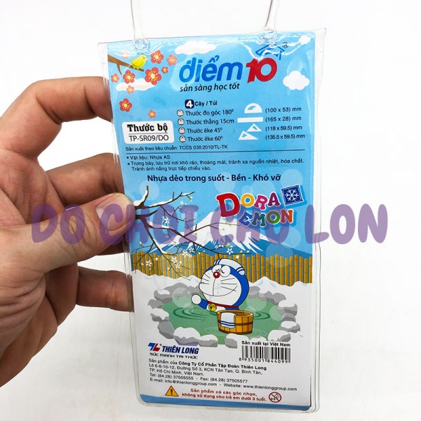 Thước bộ Thiên Long điểm 10 Doraemon TP-SR09/DO 4 loại là loại thước thẳng dùng cho học sinh. Thước được cấu tạo từ nhựa cứng, trong suốt, bền khi sử dụng. Nhựa AS chất lượng cao, an toàn không độc hại. Sử dụng hình ảnh Doraemon rất dễ thương và thu hút.