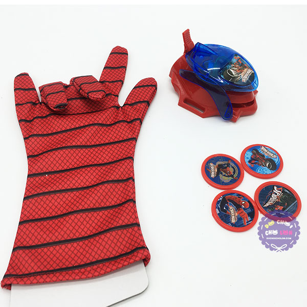 Vỉ đồ chơi bao tay người nhện bắn 4 đĩa nhạc đèn là loại đồ chơi siêu anh hùng người nhện với chiếc bao tay và đồng hồ có thể bắn ra đĩa chắc chắn sẽ là món đồ chơi bao tay người nhện được các bé yêu thích. Sản phẩm dành cho các bé từ 4 tuổi trở lên.