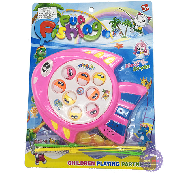 Vỉ đồ chơi câu cá 2 cần 8 cá hình cá 3 sọc đuôi dùng pin có nhạc là loại đồ chơi câu cá giúp bé rèn luyện khả năng khéo léo bằng việc dùng chiếc cần câu để câu những chú cá chồi lên ngụp xuống, bé phải phản ứng kịp thời khi cá mở miệng mới có thể câu được chúng lên, đây là bộ đồ chơi câu cá giúp bé rèn luyện khả năng tập trung, sự nhanh nhẹn. Dành cho trẻ em trên 3 tuổi
