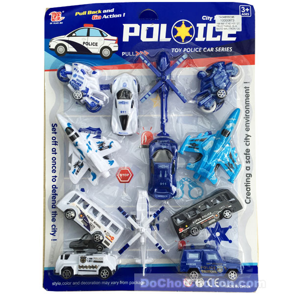 Vỉ đồ chơi xe ô tô, bus, máy bay, mô tô cảnh sát 12 chiếc chạy trớn là loại đồ chơi xe mô hình các loại xe mô hình cảnh sát với thiết kế màu sắc tươi sáng, mô phỏng chân thật các loại xe được dùng trong nghành cảnh sát, chắc chắn sẽ làm các bé có ước mơ trở thành chú cảnh sát bắt cướp yêu thích món đồ chơi này. Sản phẩm dành cho các bé từ 3 tuổi trở lên.