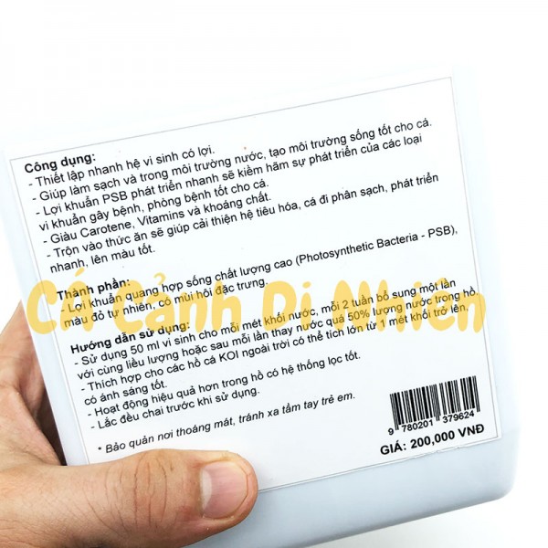 Đặc điểm: lợi khuẩn PSB phát triển nhanh trong môi trường nhiều ánh sáng sẽ kìm hãm sự phát triển của các loại vi khuẩn gây bệnh, phòng bệnh tốt cho cá. Sản phẩm giàu vitamin và khoáng chất. Trộn vào thức ăn sẽ giúp cải thiện, tiêu hóa, cá đi phân sạch, phát triển nhanh và lên màu tốt.