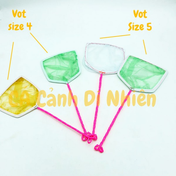 Vợt bắt cá vuông the, vuông lưới Việt Nam Size 4,5 dùng để vớt cá các loại cá kiểng như cá 7 màu, cá chép con, hoặc vớt các loại thức ăn như trùng chỉ.
